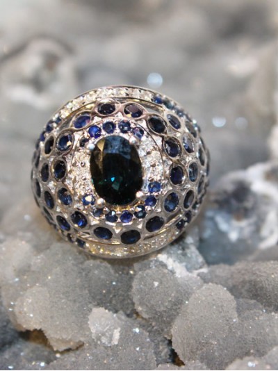 ruby and diamond, tourmaline-blue sapphire –diamond